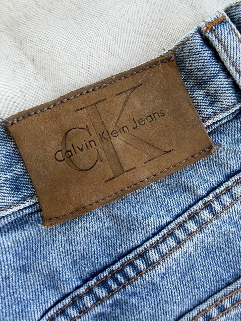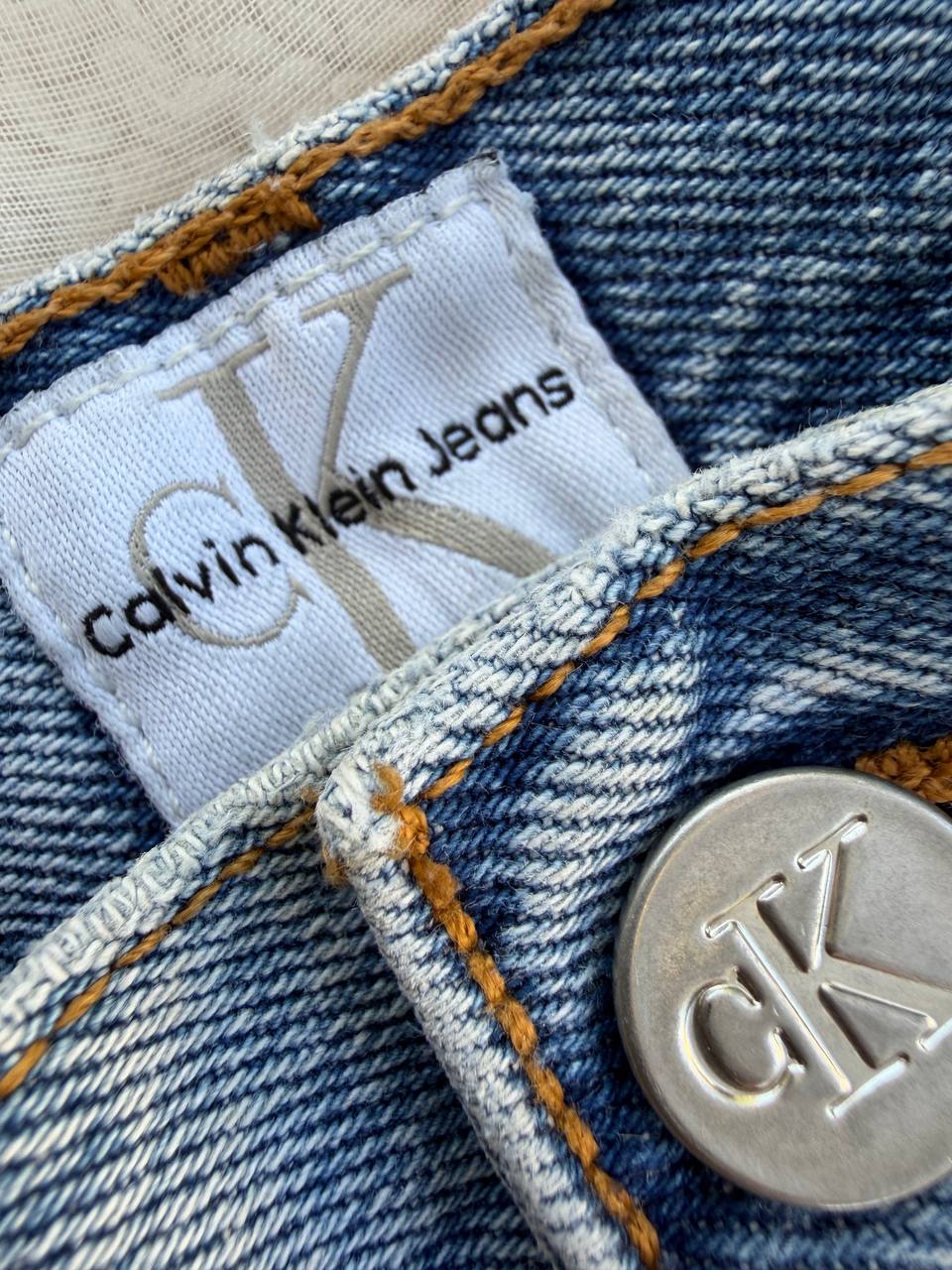 - Jort denim marca Calvin Klein, modelo vintage, tiro alto, fit ancho, sin detalles.