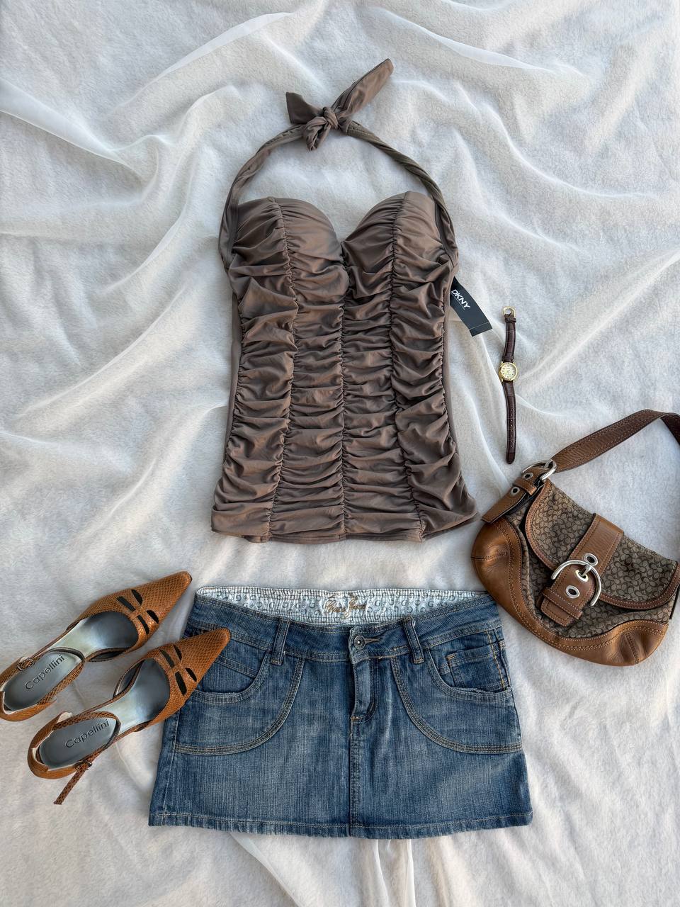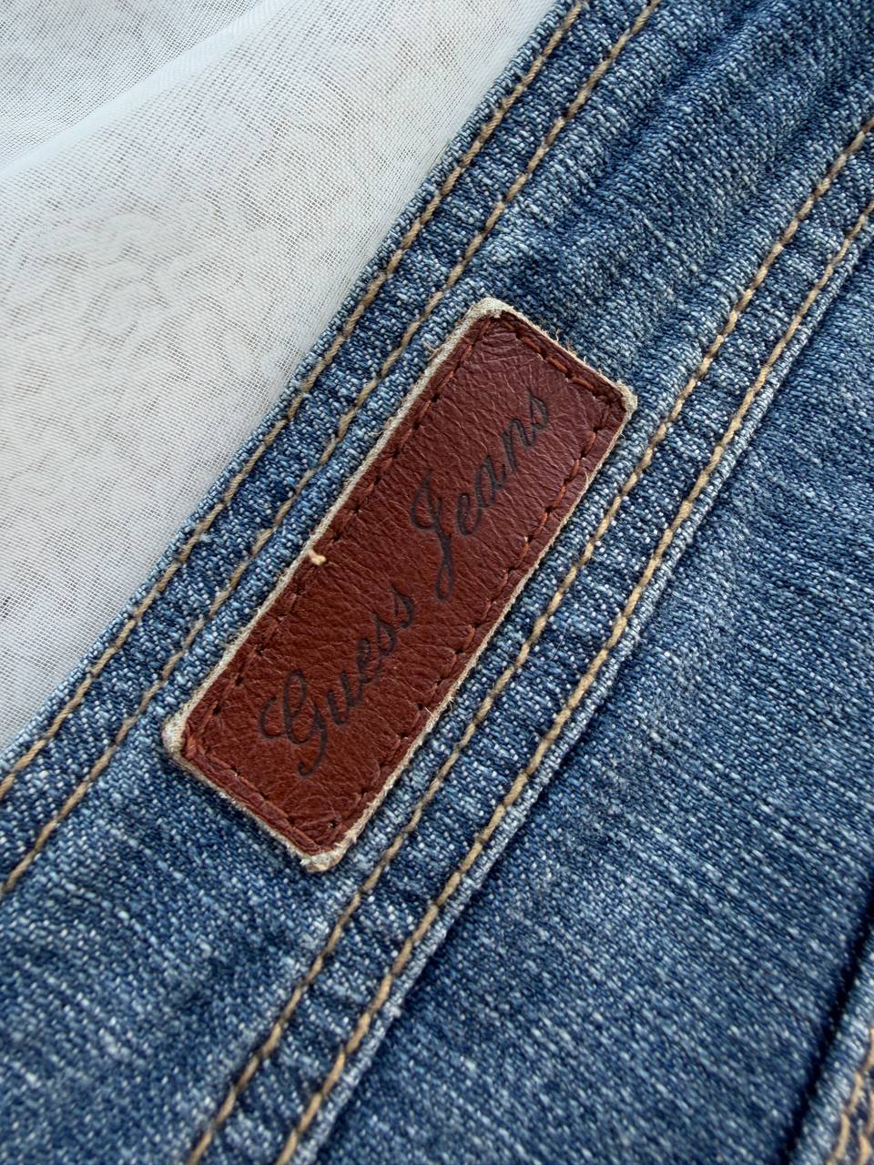 - Mini falda de jeans marca Guess, estampado interno, bolsillos funcionales.